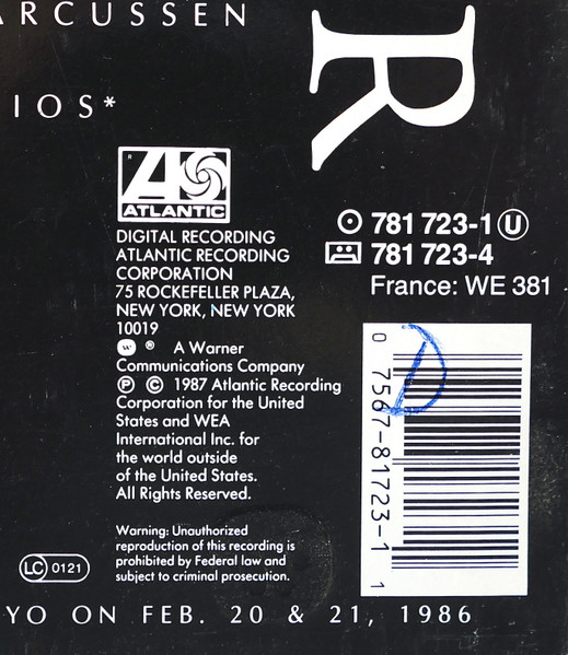 ℗ © 1987 Atlantic Recording Corporation for the United States and WEA International Inc. for the world outside of the United States.