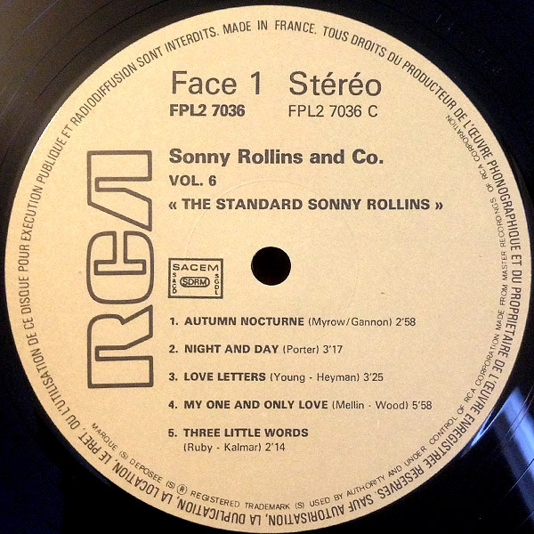 The cover states the main artist as Sonny Rollins but the spine and label states "Sonny Rollins & Co.".