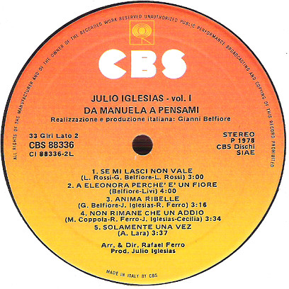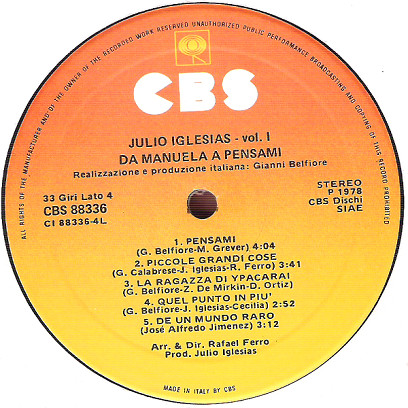 - Record Company – CBS Dischi S.p.A.