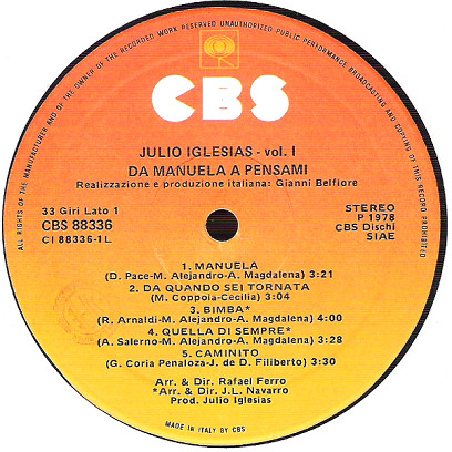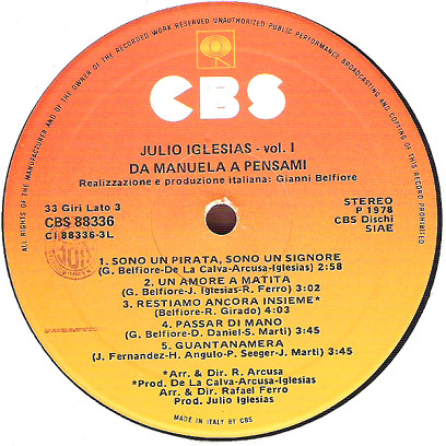 Written-By – G. Belfiore*, J. Iglesias*, R. Ferro*