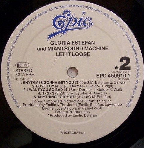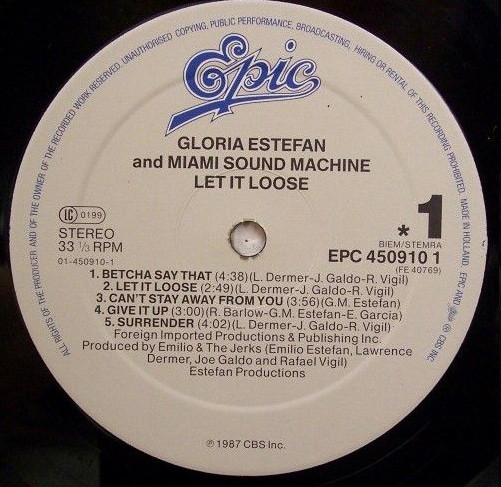Very similar to Miami Sound Machine - Let It Loose which has different Cat.-Nr. and Runouts, also NO (Catalog number on record): EPC 450910 1 (FE 40769)