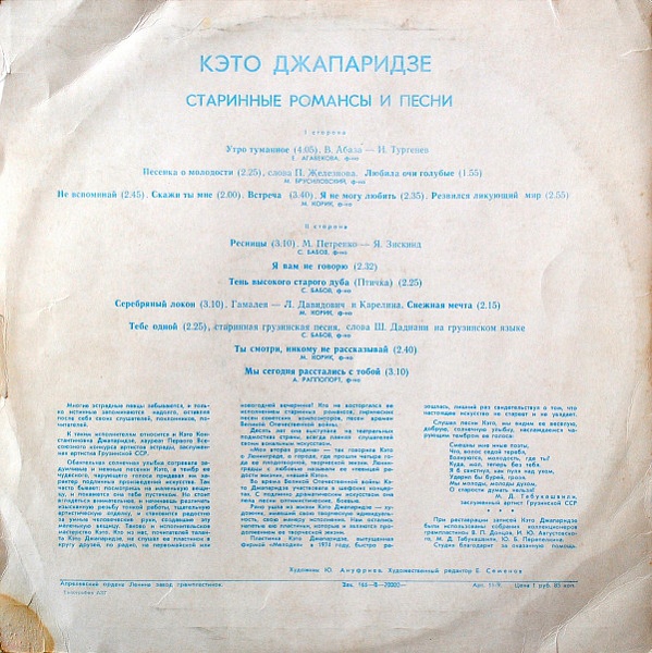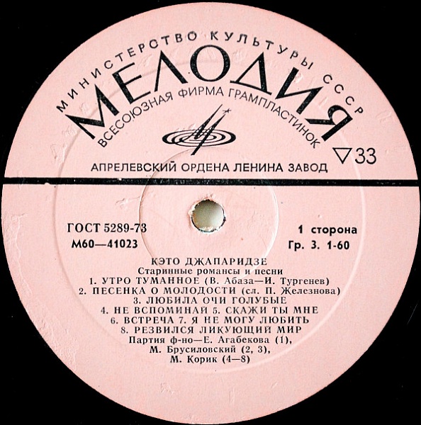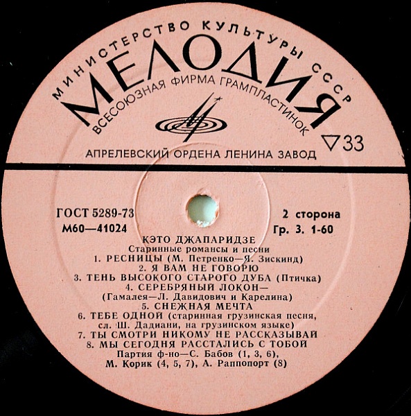 | B6 | Тебе Одной (Старинная Грузинская Песня) | 2:25 |