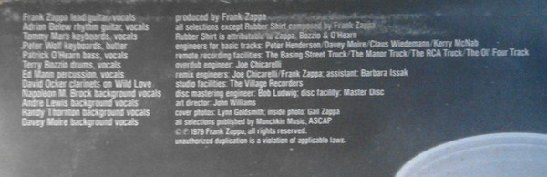 - Mixed By – Frank Zappa, Joe Chicarelli*
