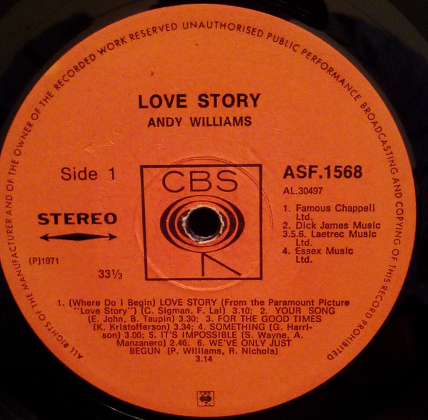 | A1 | (Where Do I Begin) Love Story | 3:10 | |