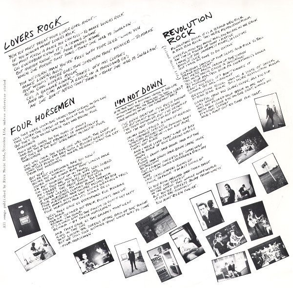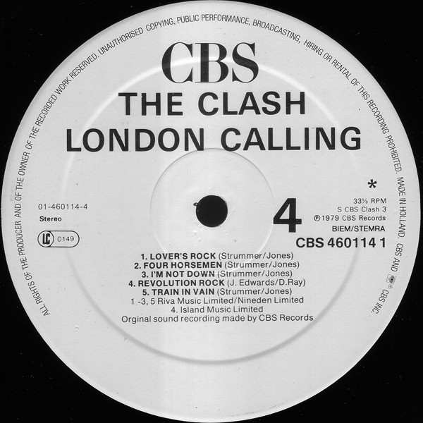 - Written-By – Strummer* (tracks: A1, A3 to B4, C2 to D3, D5), Jones* (tracks: A1, A3 to B4, C2 to D3, D5)