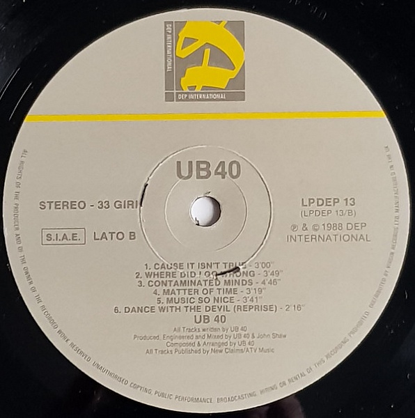 - Words By, Music By – UB40 (tracks: A1, A2, A4 to B6)