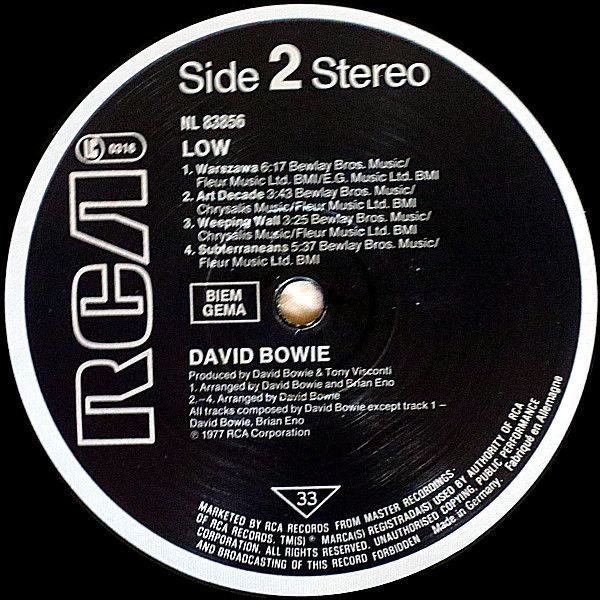 - Arranged By – Brian Eno (tracks: B1), David Bowie
