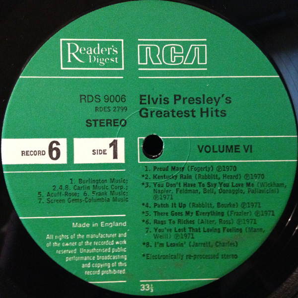 - Pressed By – RCA Records Pressing Plant, Washington, UK