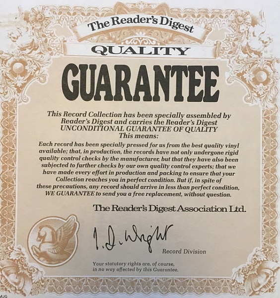 2) Readers Digest 'Quality Guarantee' certificate (generic and non-content specific).