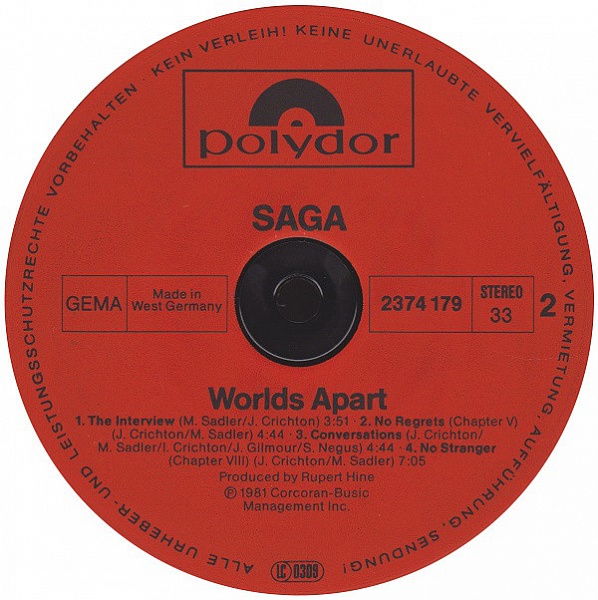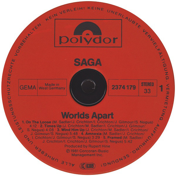 - Worlds Apart has no black ring around the spindle hole and no embossed no-ink stamp "PRS Hannover" on back cover