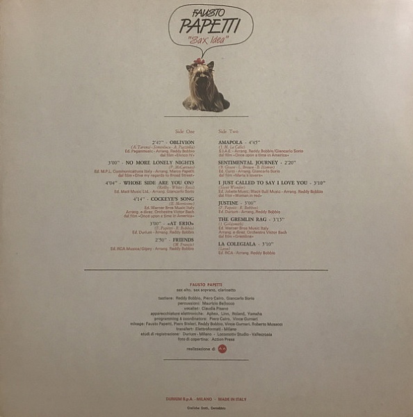 - Alto Saxophone [Sax Alto], Soprano Saxophone [Sax Soprano], Clarinet [Clarinetto] – Fausto Papetti