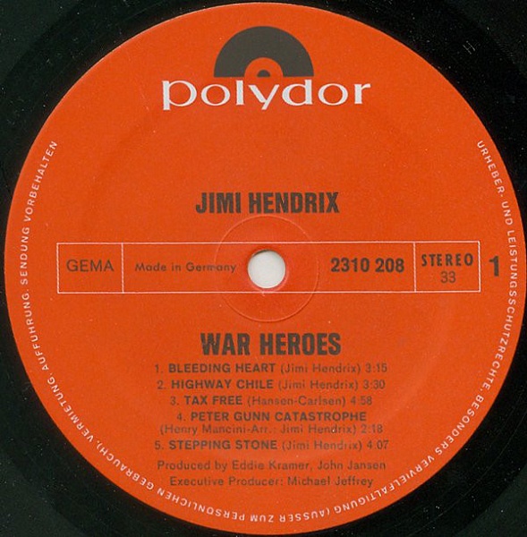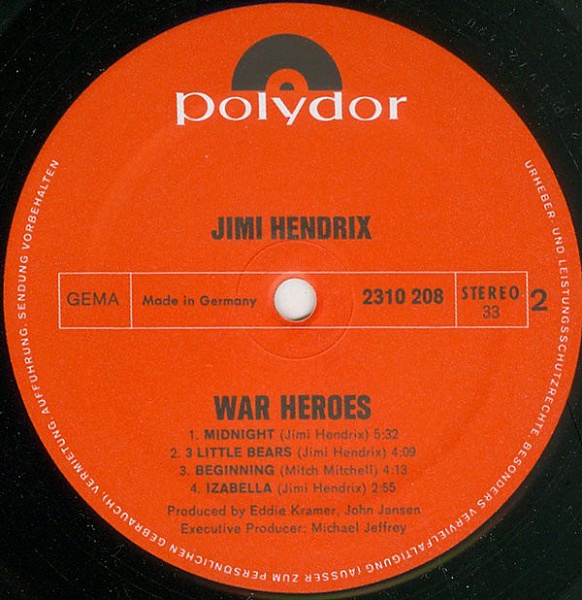 - Bass – Billy Cox (tracks: A1, A4, A5, B2 to B5), Noel Redding (tracks: A2, A3, B1)