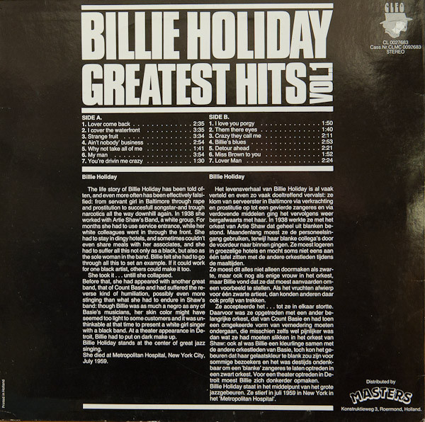 - <a href=http://www.discogs.com/Billie-Holiday-Greatest-Hits-Vol-1/release/2866699>White</a>