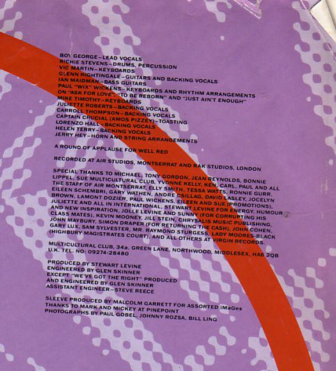 Among the members of Boy George's backing band on this album is Well Red.