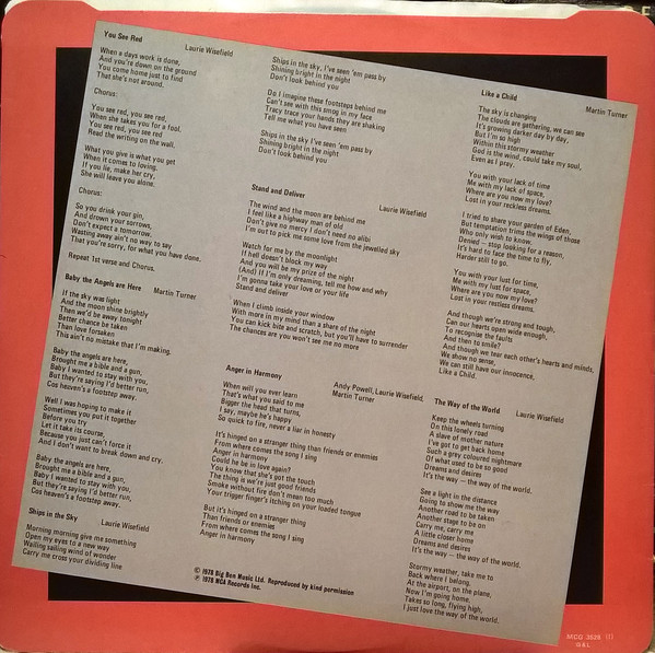 - Written-By – Andy Powell (tracks: B1), Laurie Wisefield (tracks: A1, A3, A4, B1, B3), Martin Turner (2) (tracks: A2, B1, B2)