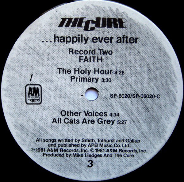 - Written-By – Tolhurst*, Hartley* (tracks: A1 to B5), Smith*, Gallup*