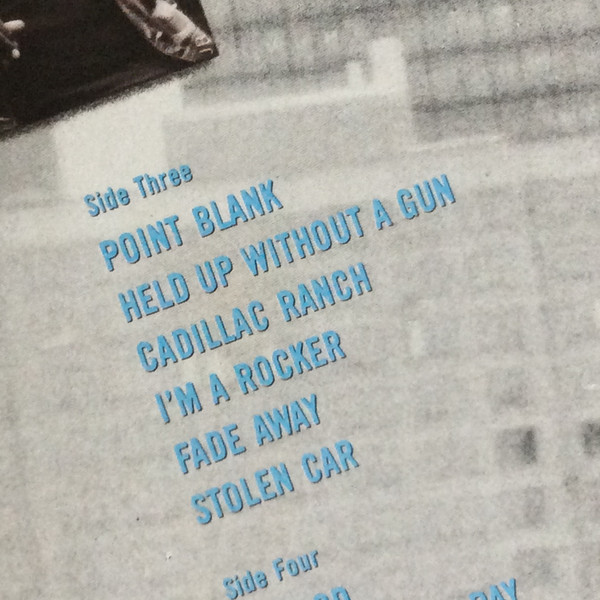Misprint on inner sleeve for side three / four: "Held Up Without A Gun", is printed on side three tracklist, between "Point Blank" and "Cadillac Ranch", but is not on the disc or cover tracklist.