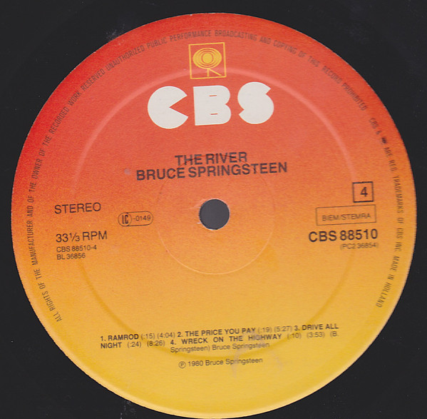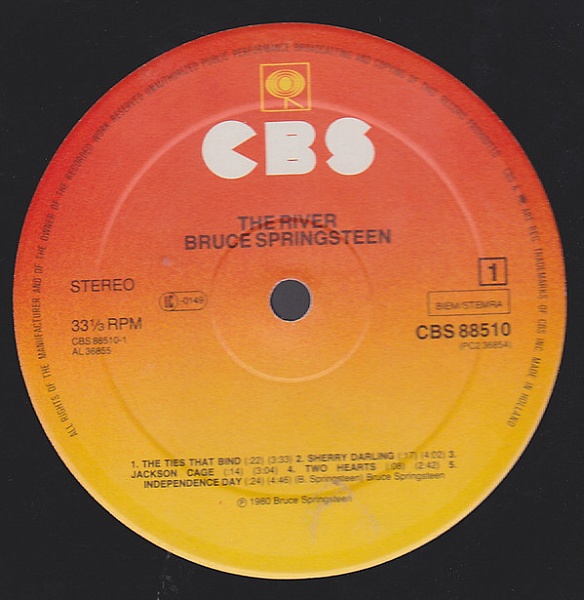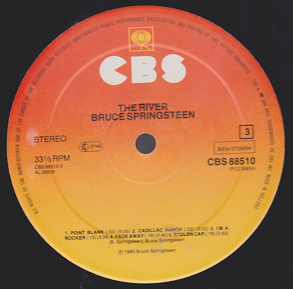 Identical to Bruce Springsteen - The River but this issue is without a little printed star over side numbers on center labels