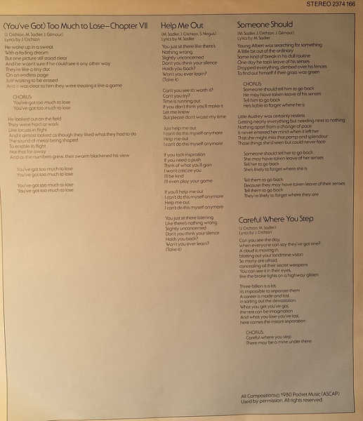 All compositions© 1980 Pocket Music (ASCAP).