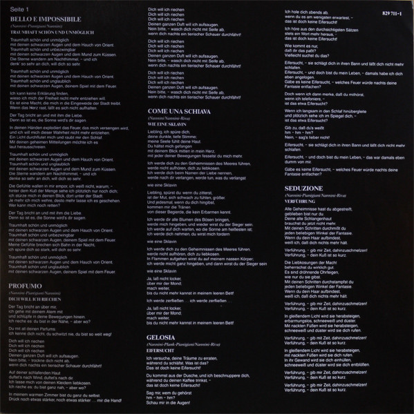 Comes with printed inner sleeve (Italian lyrics and credits) and separate lyrics sheet with German translation.
