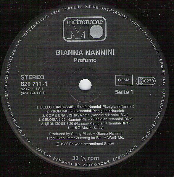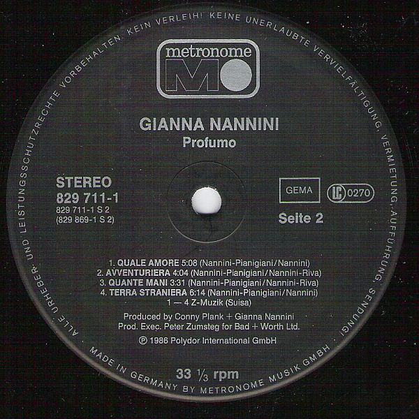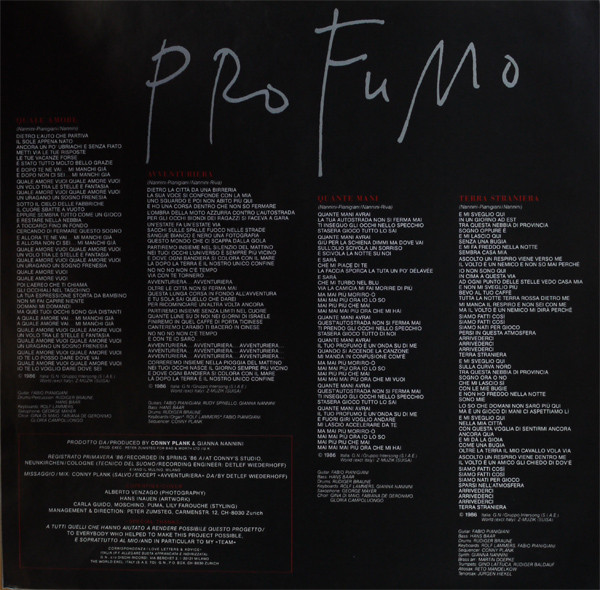 - Producer – Conny Plank, Gianna Nannini