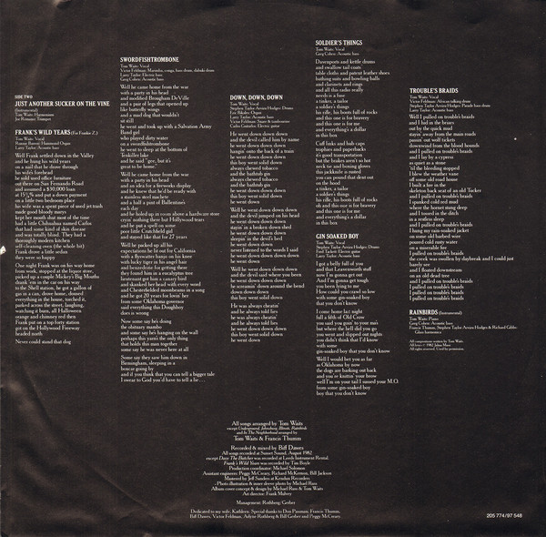 - Arranged By – Francis Thumm (tracks: A1, A4, A7, B8), Tom Waits