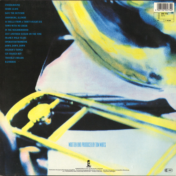 Catalog numbers on the back in black lettering and thus different to the catalogue numbers on Swordfishtrombones, which are in white lettering.