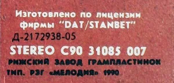 - Pressed By – Рижский Завод Грампластинок