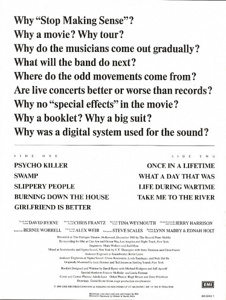 © 1984 EMI Records Ltd., under exclusive license from Talking Heads.