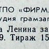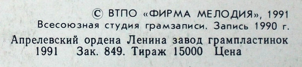Всесоюзная студия грамзаписи. Запись 1990 г.