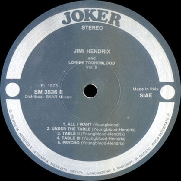 C1 to D5 subtitled "Jimi Hendrix and Lonnie Youngblood Vol. 5" on label
