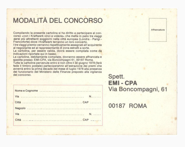Italian version comes with a Postcard