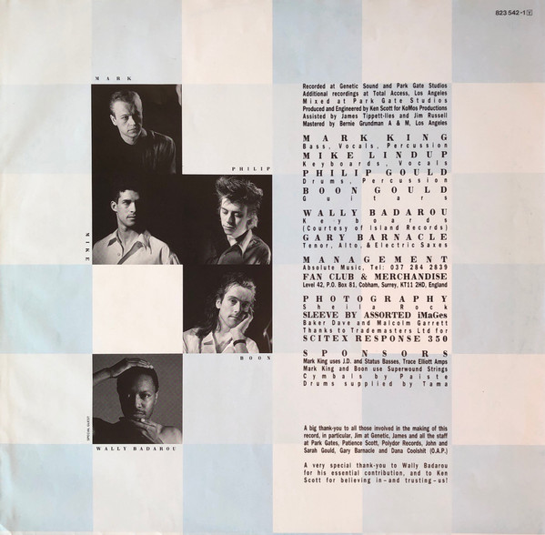 Mixed at Park Gate Studios, mastered at A & M, Los Angeles.
