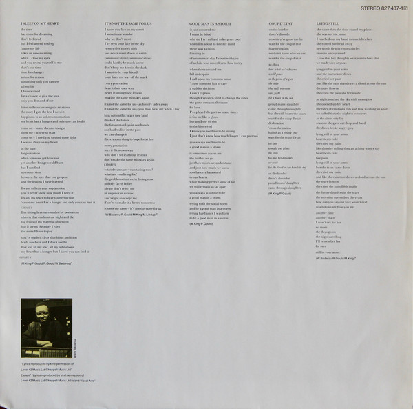 Published by Level 42 Music Ltd. / Chappell Music Ltd. / Island Visual Art except A2, B3, B4 published by Level 42 Music Ltd. / Chappell Music Ltd.