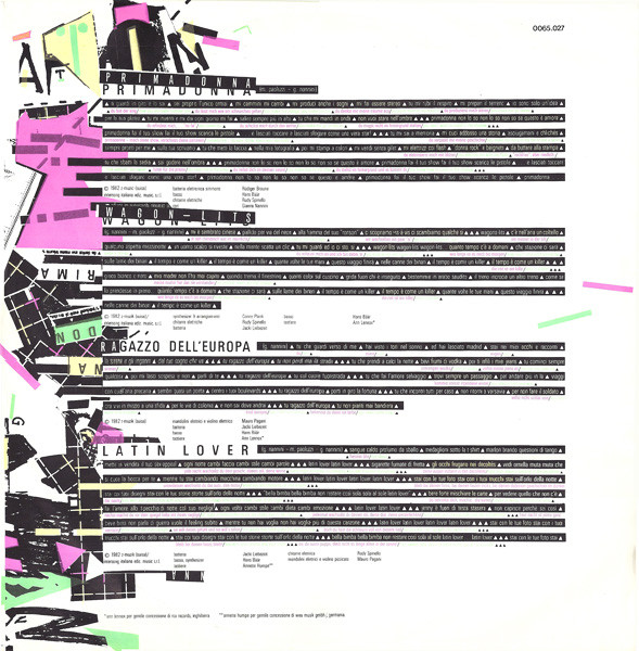 Printed inner sleeve with italian lyrics, german & english translations.