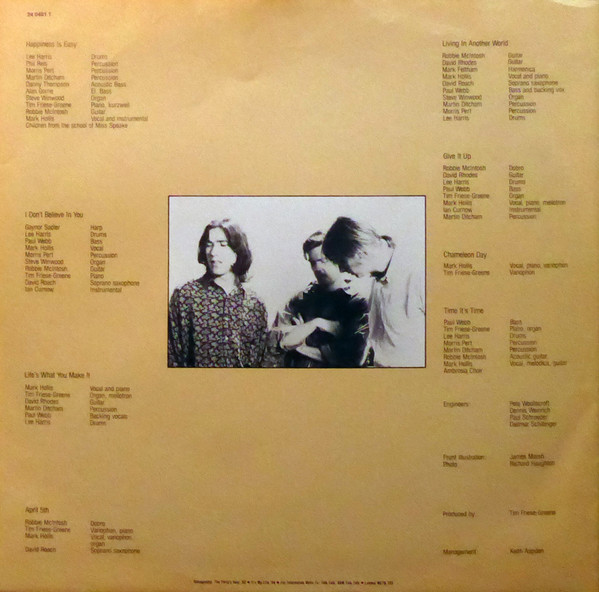 - Organ – Steve Winwood (tracks: A1, A2, B1), Tim Friese-Greene (tracks: A3, B2, B4)
