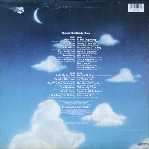 - Written-By – Graeme Edge (tracks: A3, B1, B5, D6), John Lodge (tracks: A4, B4, C1, D1), Justin Hayward (tracks: A1, A2, B2, B3, C2, C4, C6, D3, D5), Mike Pinder (tracks: B6 to B8, C5, D4), Ray Thomas (tracks: A5, A6, C3, C6, D2)