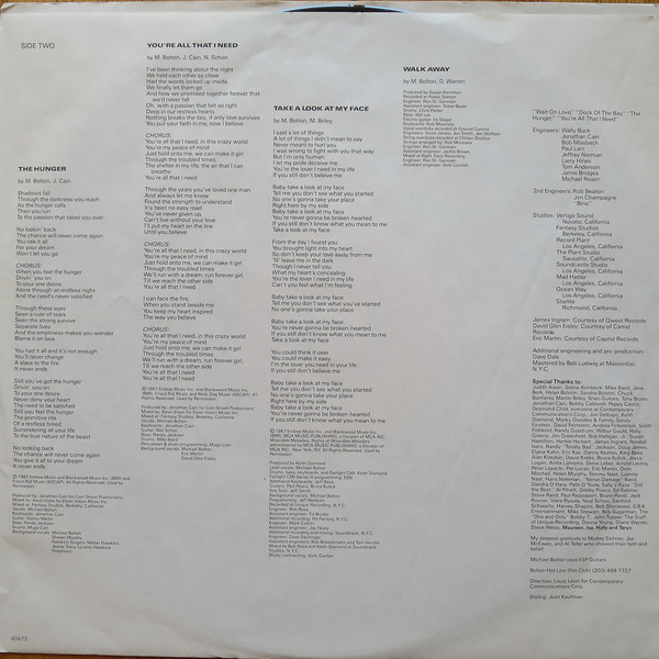 - Vocals – Michael Bolton (tracks: A2, A3, B1, B2)