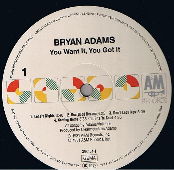 - Phonographic Copyright ℗ – A&M Records, Inc.