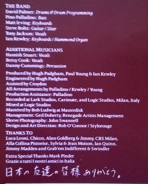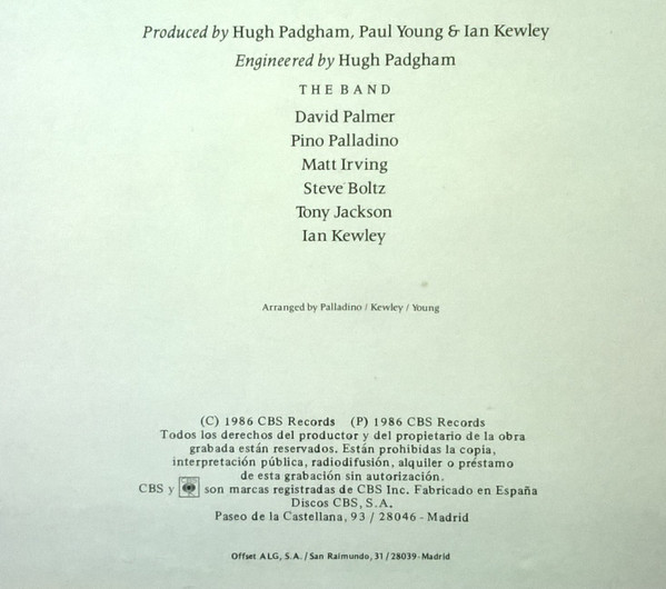 - Producer – Hugh Padgham, Ian Kewley, Paul Young