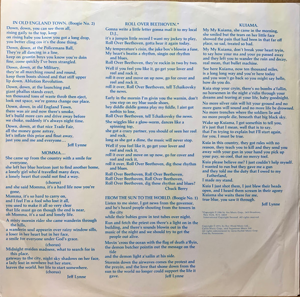 - Words By, Music By – Chuck Berry (tracks: A3), Jeff Lynne (tracks: A1, A2, B1, B2)