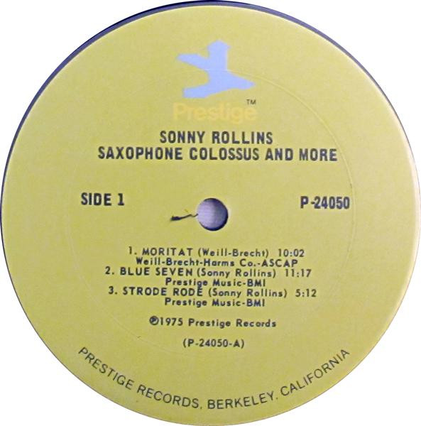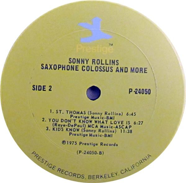Side 1 and first two selections on Side 2 originally issued as Sonny Rollins - Saxophone Colossus (Prestige 7079). Recorded June 22, 1956.