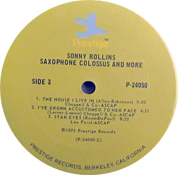 "The House I Live In" originally issued as part of Sonny Rollins - Sonny Boy (Prestige 7207); the balance of sides 2 and 3 included on Sonny Rollins Quintet With Kenny Dorham And Max Roach - Rollins Plays For Bird (Prestige 7095). Recorded October 5, 1956.