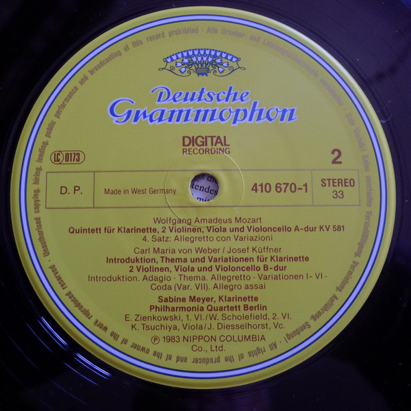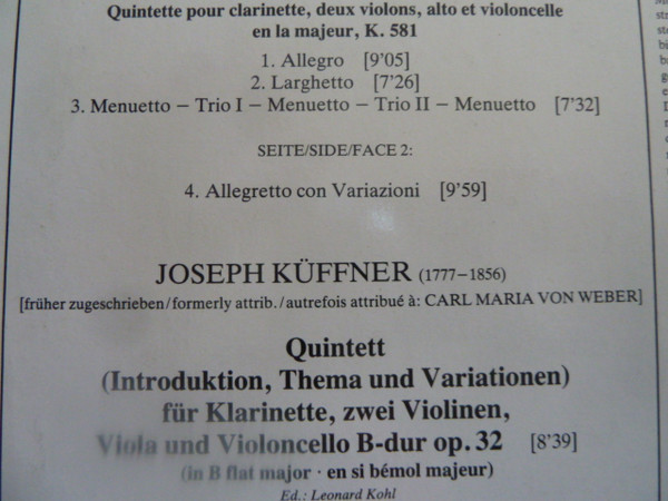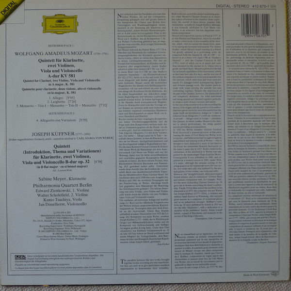 Wolfgang Amadeus MozartWeberKüffnerSabine MeyerPhilharmonia Quartett Berlin - Klarinettenquintett / Introduktion, Thema Und Variationen