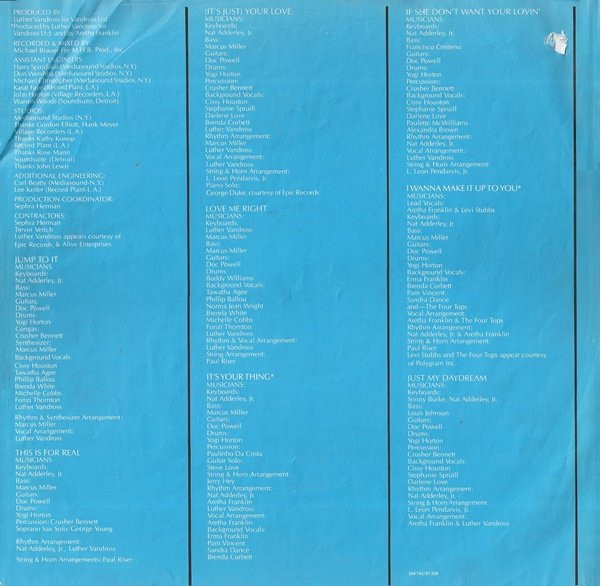 - Co-producer – Aretha Franklin (tracks: B2 & B3)