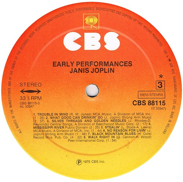 | D2 | Janis Joplin With The Dick Oxtot Jazz Band*– | Mary Jane | 2:10 |