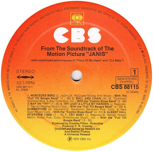 | From The Soundtrack Of The Motion Picture "Janis" | |||