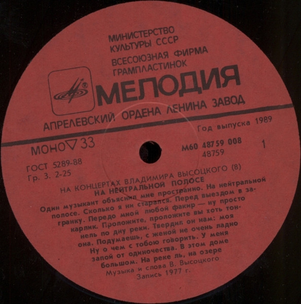 Всесоюзная студия грамзаписи. Запись 1977 г.