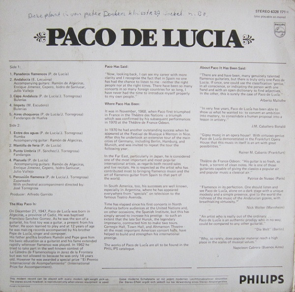 - Written-By – E. Lecuona* (tracks: A2), F. Sánchez* (tracks: B3), J. Torregrosa* (tracks: A3, A5, B1, B3, B5), M. Escudero* (tracks: A4), P. De Lucía* (tracks: A1, A3, A5, B1, B2, B4, B5)