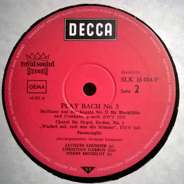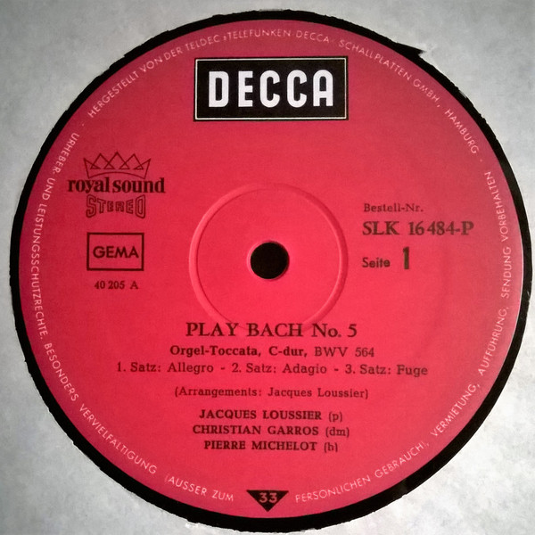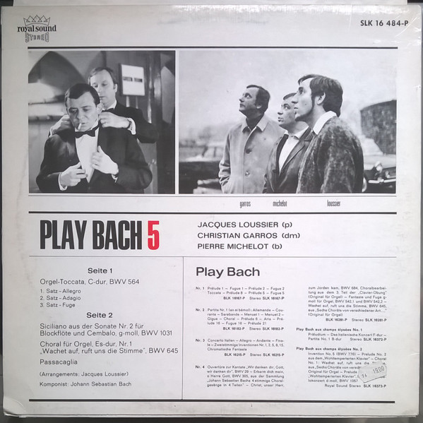 On rear cover are listed other "Play Bach"- Releases in Mono -and SLK-Stereo-Versions (BLK Nr. = Mono-Release)